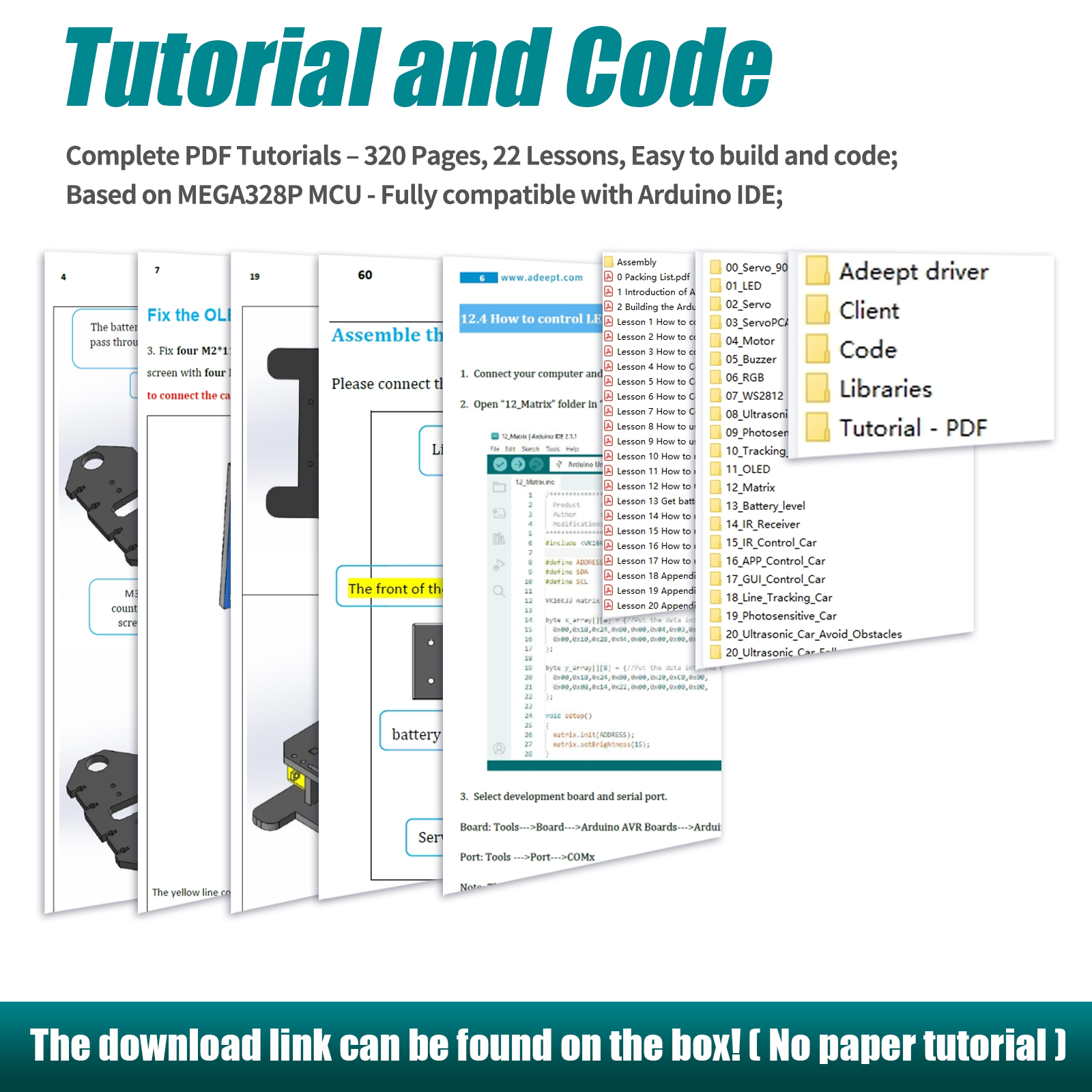 - 【Easy to Assemble and Build】 Detailed tutorials(220 Pages, 20 Lessons) and complete code are provided. The download link can be found on the card in the box(Paper tutorials are NOT available as the tutorials are updated frequently).