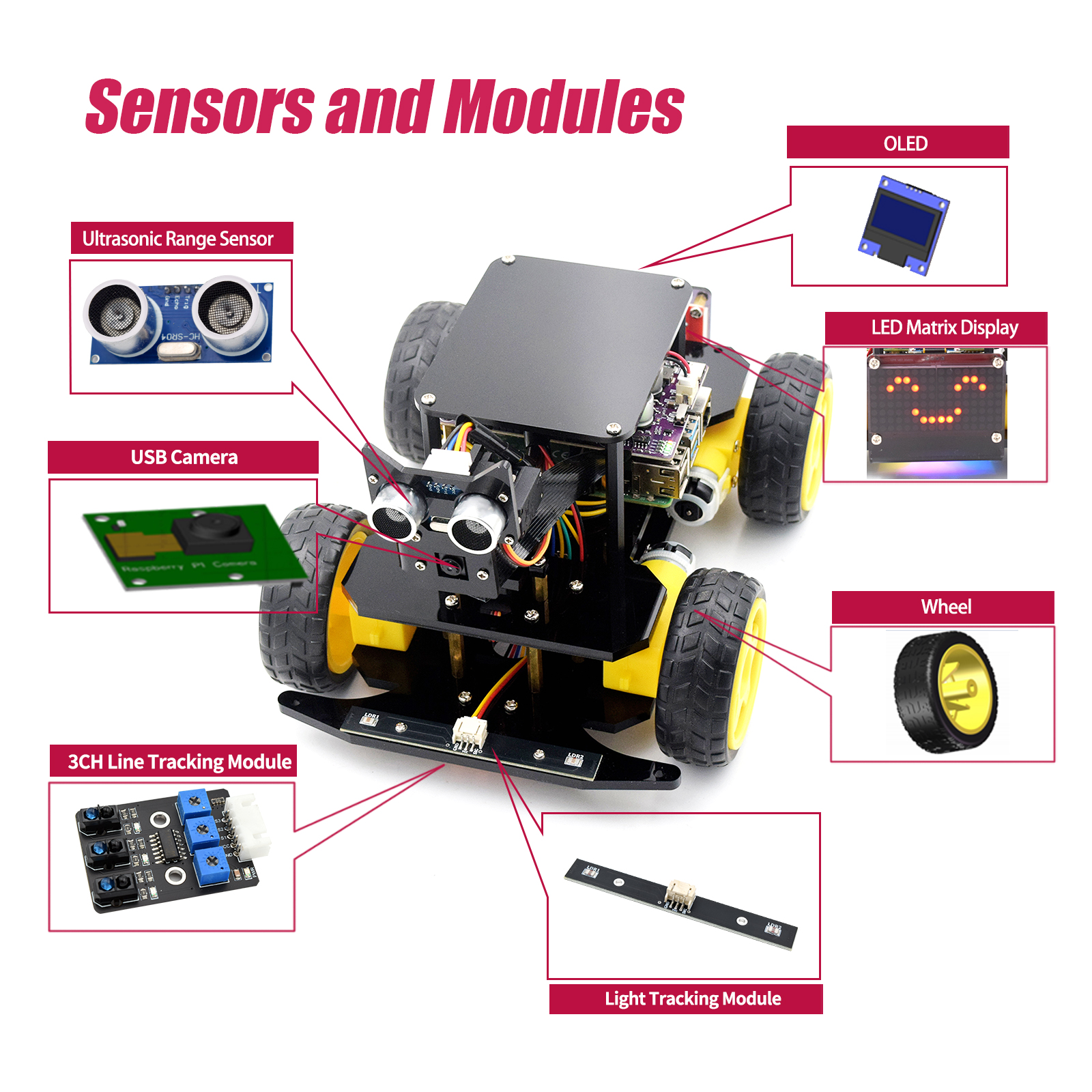 - 4WD(Four-wheel drive), each wheel can be driven independently. This Smart Car Kit is designed for students to learn to coding, building and robotics. Compatible with Raspberry Pi 5/4B/3B/3B+(Raspberry Pi NOT Included!).