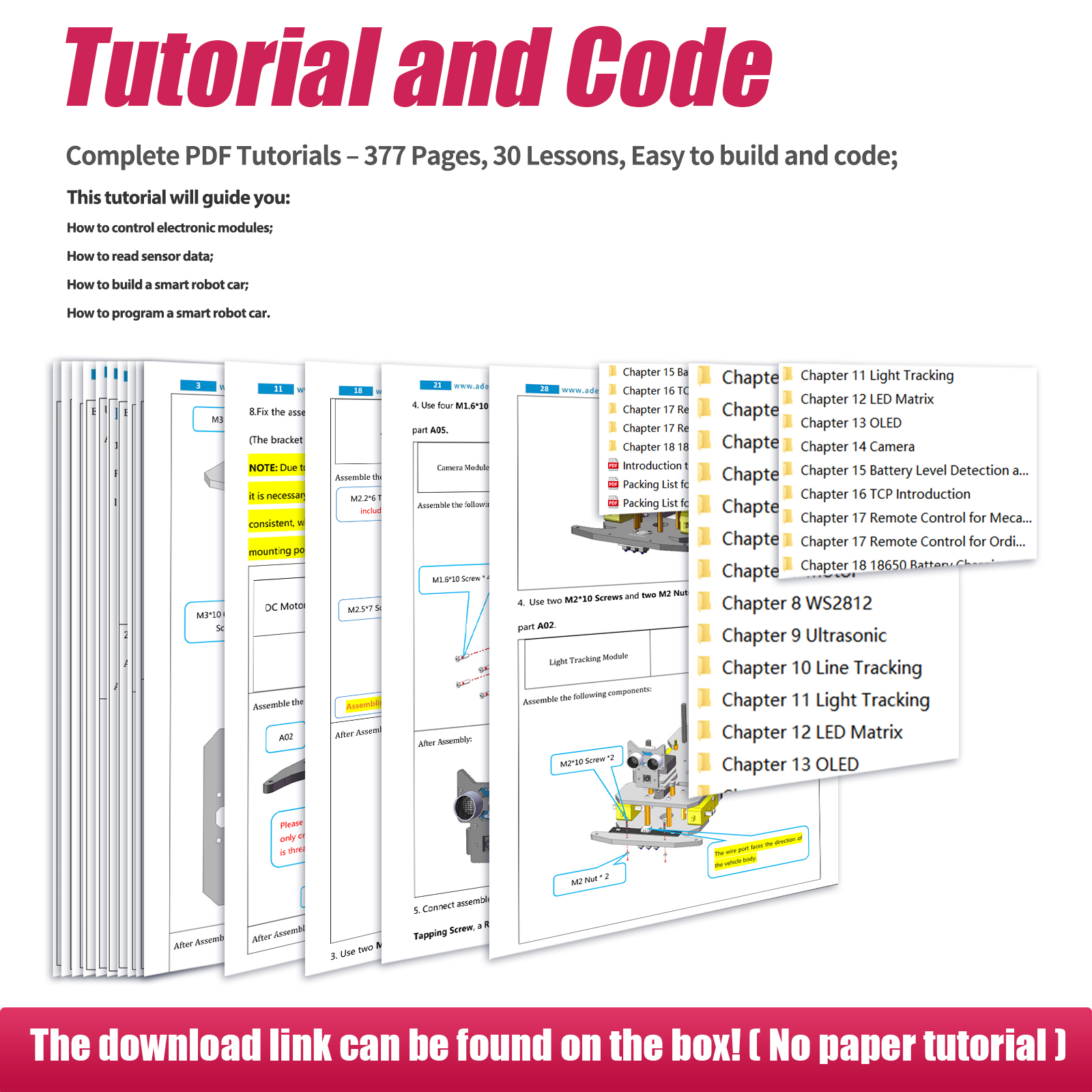 - Easy to Assemble and Build - Detailed tutorials(370 Pages, 30 Lessons) and complete code are provided. The download link can be found on the card in the box(Paper tutorials are NOT available as the tutorials are updated frequently).