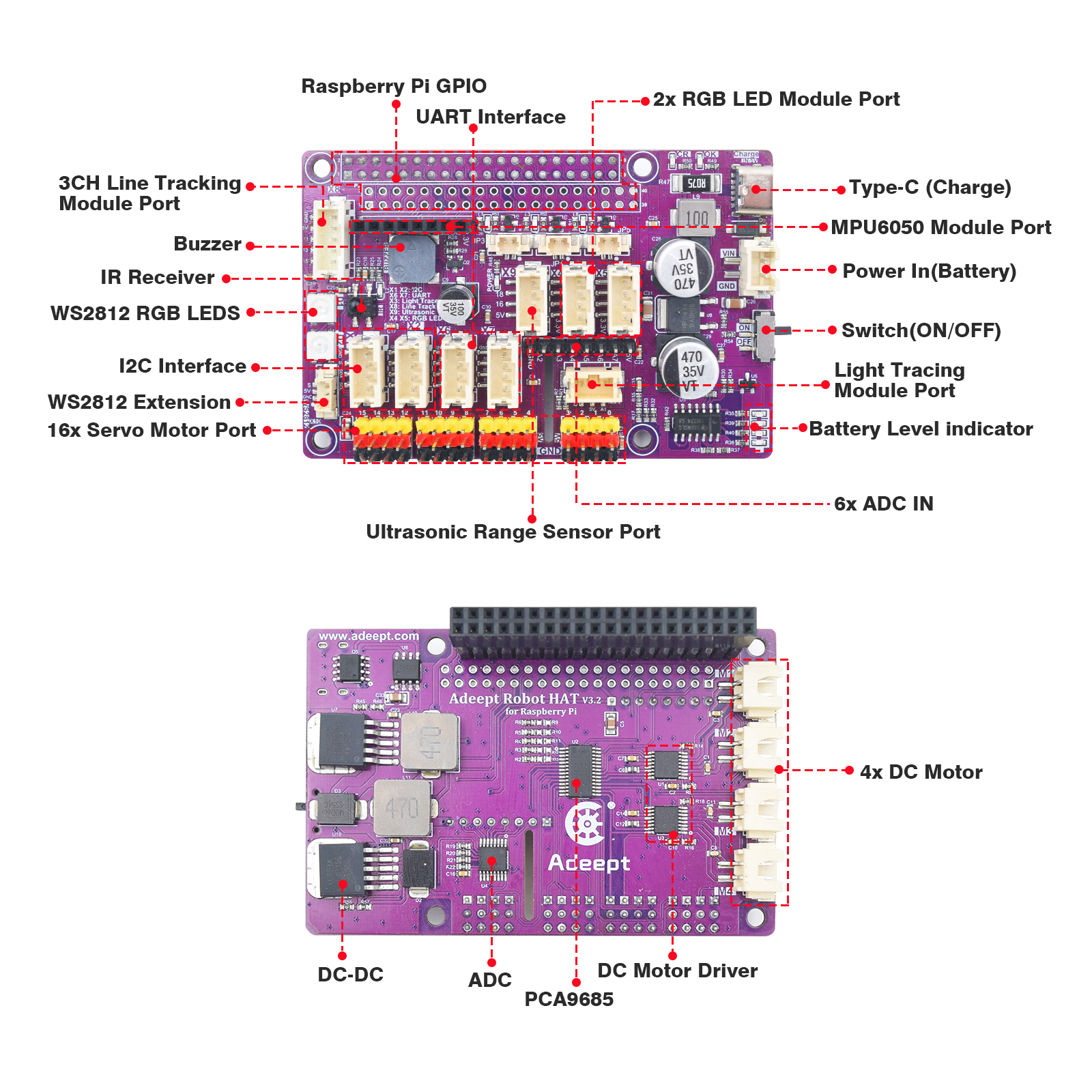 1x Adeept Robot HAT V3.2