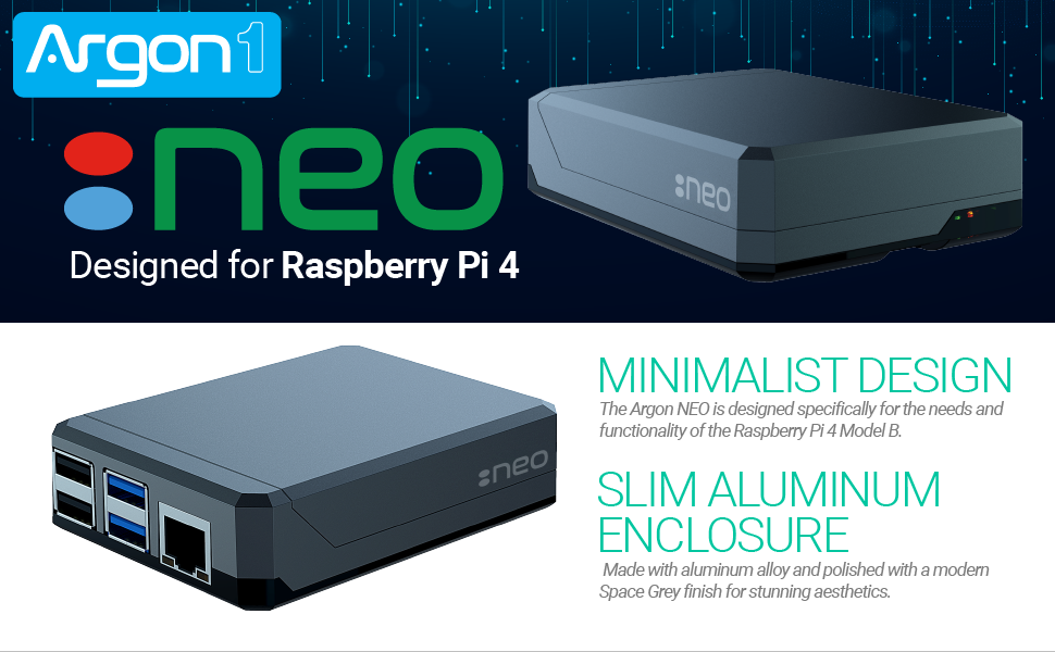 The Argon NEO is designed specifically for the needs and functionality of the Raspberry Pi 4 Model B. Made with aluminum alloy and polished with a modern Space Grey finish for stunning aesthetics.