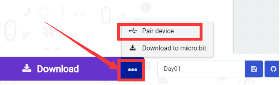 1.After writing the program in the MakeCode Editor, you need to "Pair device" first, click the
