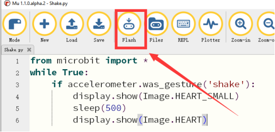 3. Click the [Flash] button to download the program to Micro:bit, as shown in the following figure: