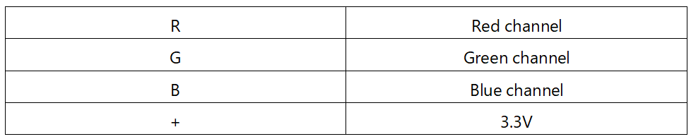We used the common anode RGB LED in this experiment. Made it into a module, from left to right we can see the common anode, R, G, B, where R, G, B are connected respectively with three SMD resistors. The longest pin is the common anode of the three LEDs.
