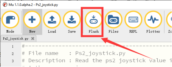 3.Click button【Flash】 to download the program to the Micro:bit. Click the button immediately (click the button