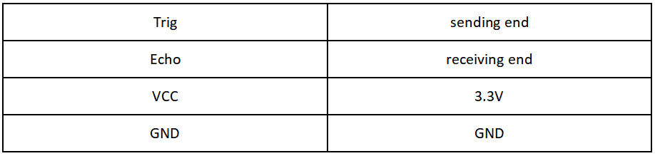 The model of the ultrasonic distance sensor we use is hc-sr04, it is mainly composed of two left and right probes, looking like our human eyes. One probe is responsible for transmitting sound waves for detection, and the other probe is responsible for receiving sound waves for return. It has 4 pins, which are VCC; Trig (control end - trigger signal input); Echo (receiver - recovery signal output); Gnd(ground).
