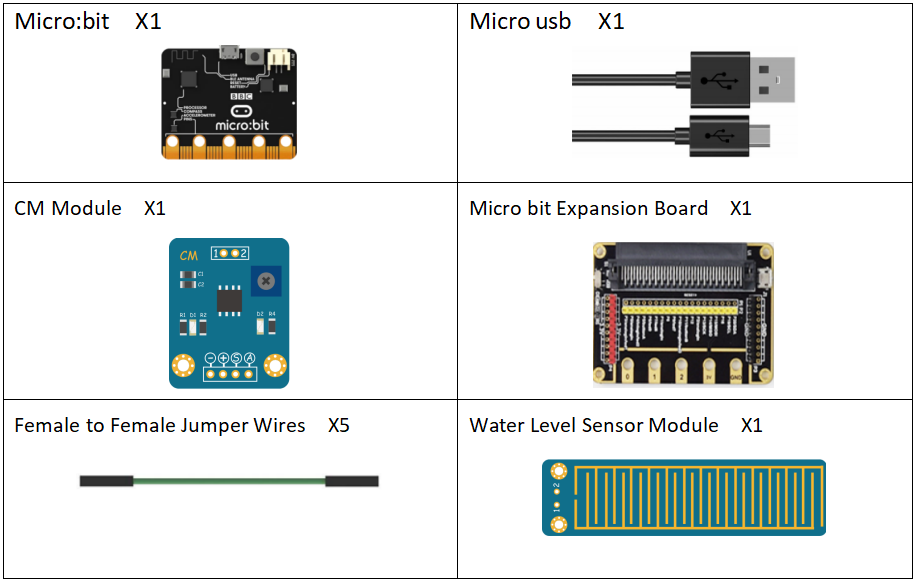 The module is a simple water level sensor. It measures the water volume by the printed wires exposed to the air on the module. The more water on the surface, more wires connected. Thus, the area of electrified wires gets larger, so the output voltage will increase.Easily complete the conversion of water volume to analog signal, and the output analog value can be directly read by the Micro:bit development board to achieve the effect of water level alarm.The surface of the sensor is gilded to prolong its life.