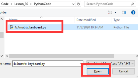 Select the file in ".py" format and click the Open: