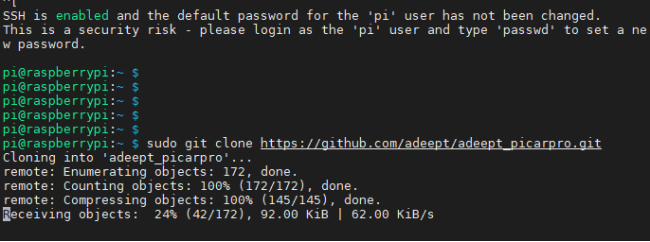 sudo git clone https://github.com/adeept/adeept_picarpro.git