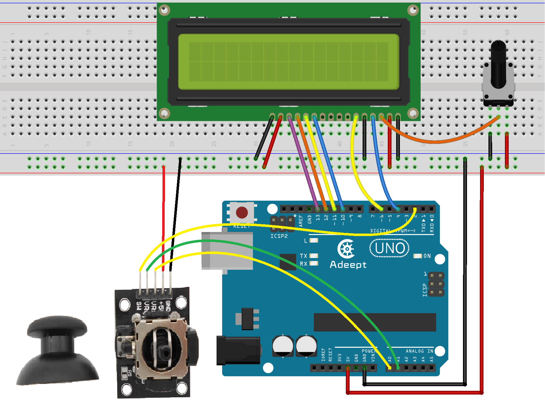In this lesson, we will learn the usage of joy stick. We program the Arduino to detect the state of PS2 joystick, and display the data on an LCD1602.